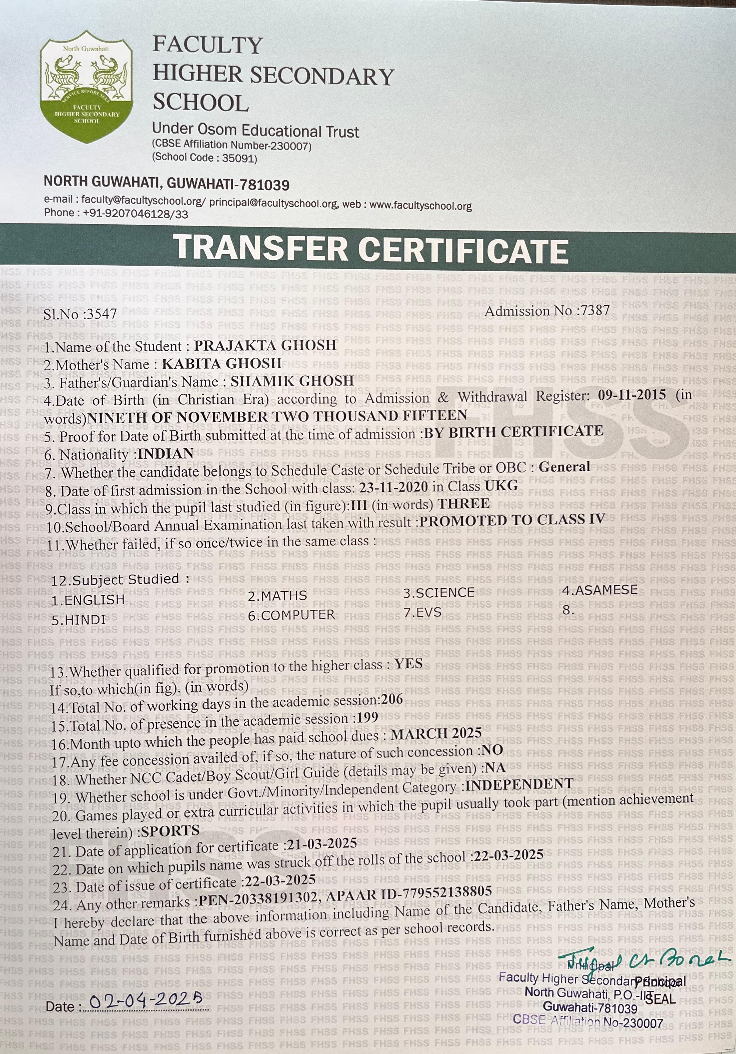 | 11 | PRAJAKTA GHOSH | Class 4 | 2025 | Download |