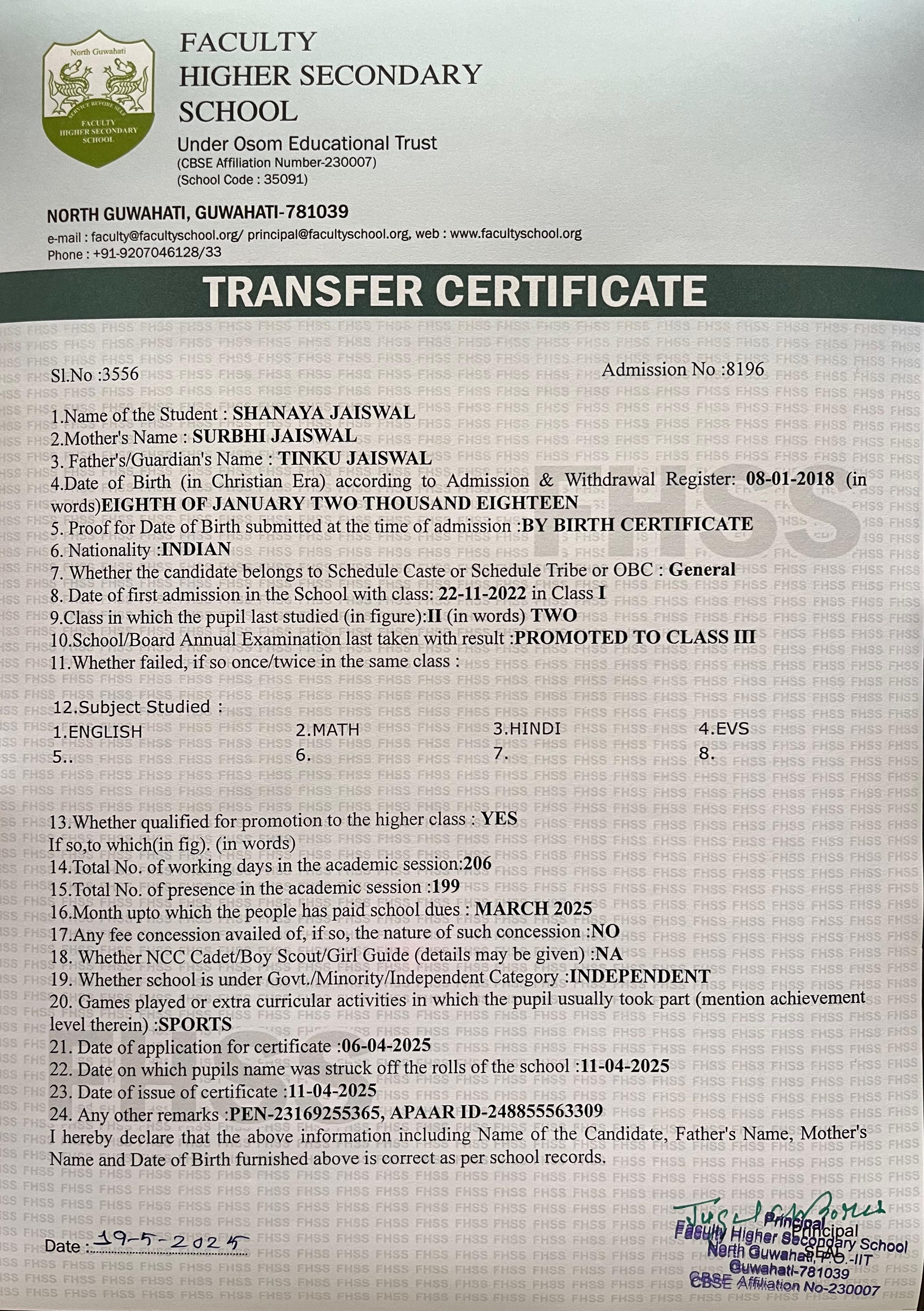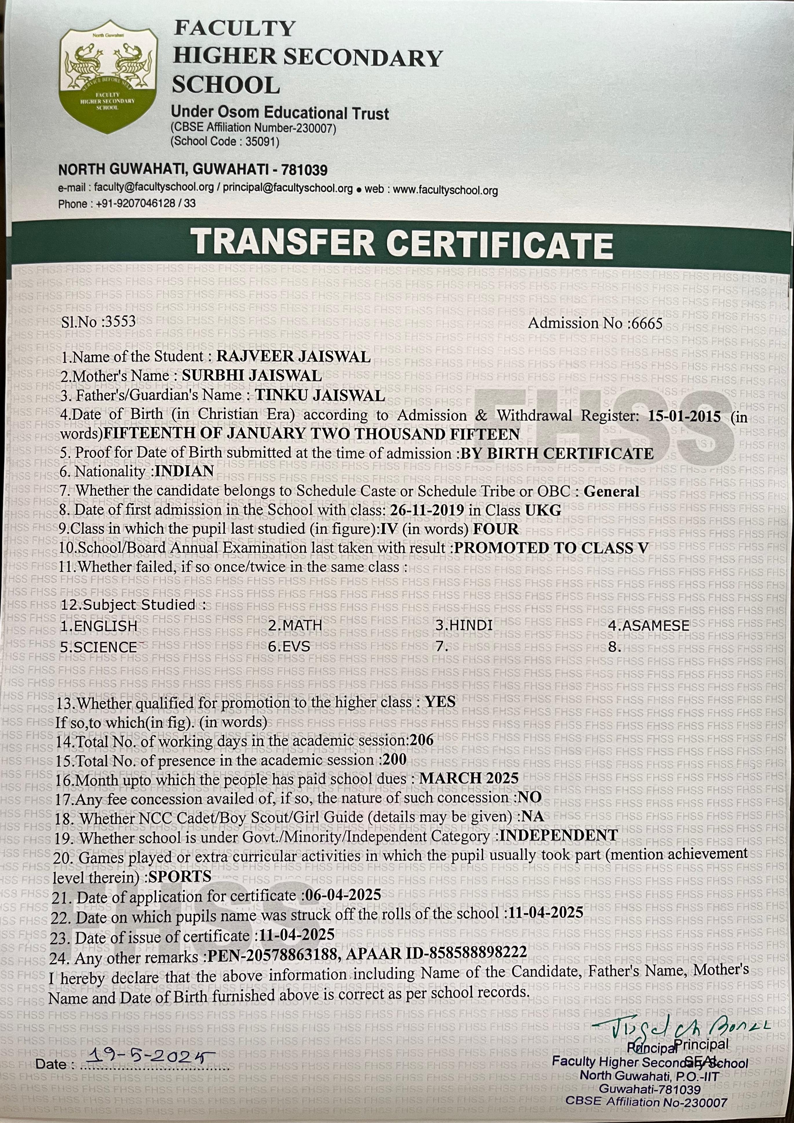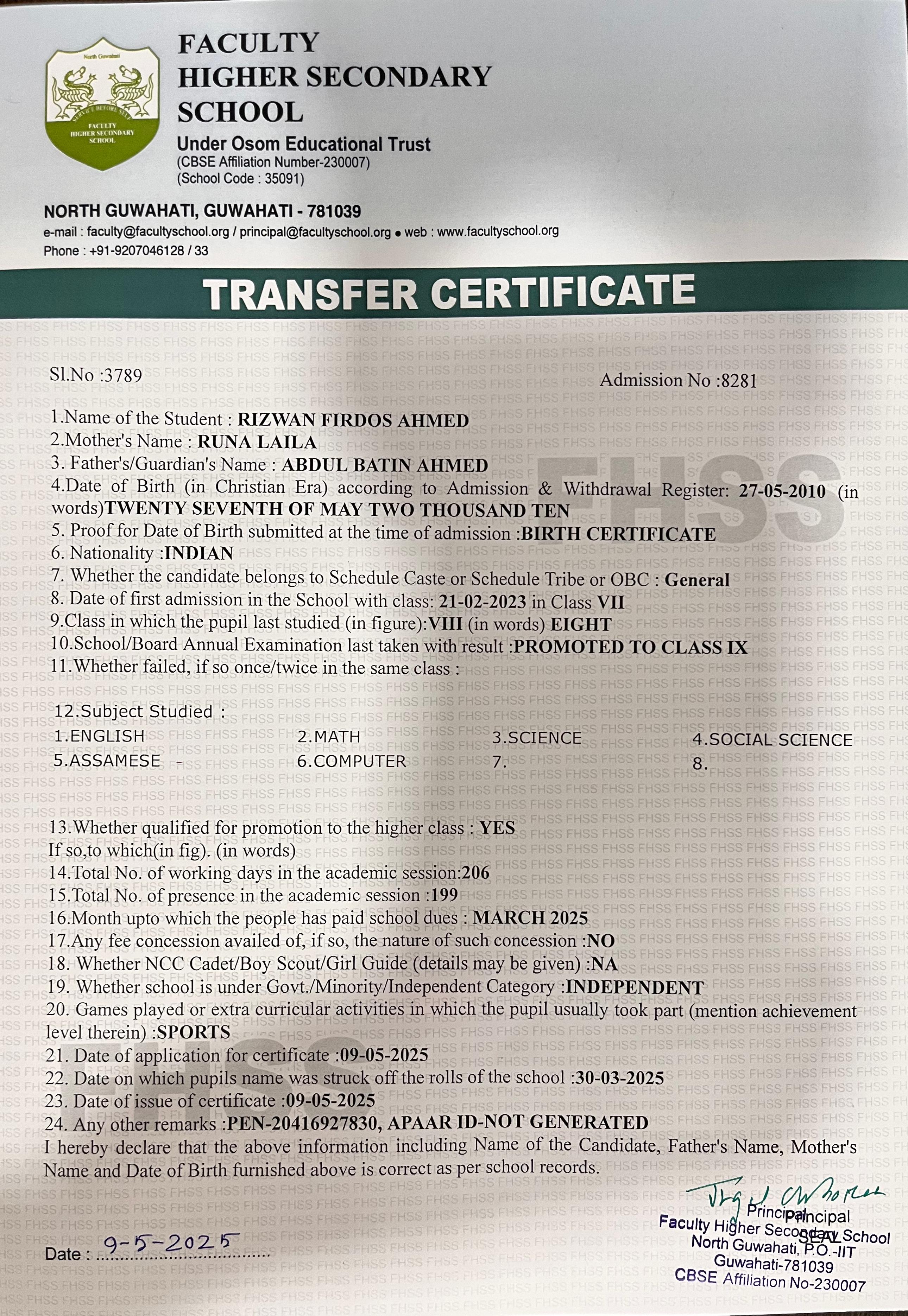 | 15 | RIZWAN FIRDOS AHMED | Class 9 | 2025 | Download |